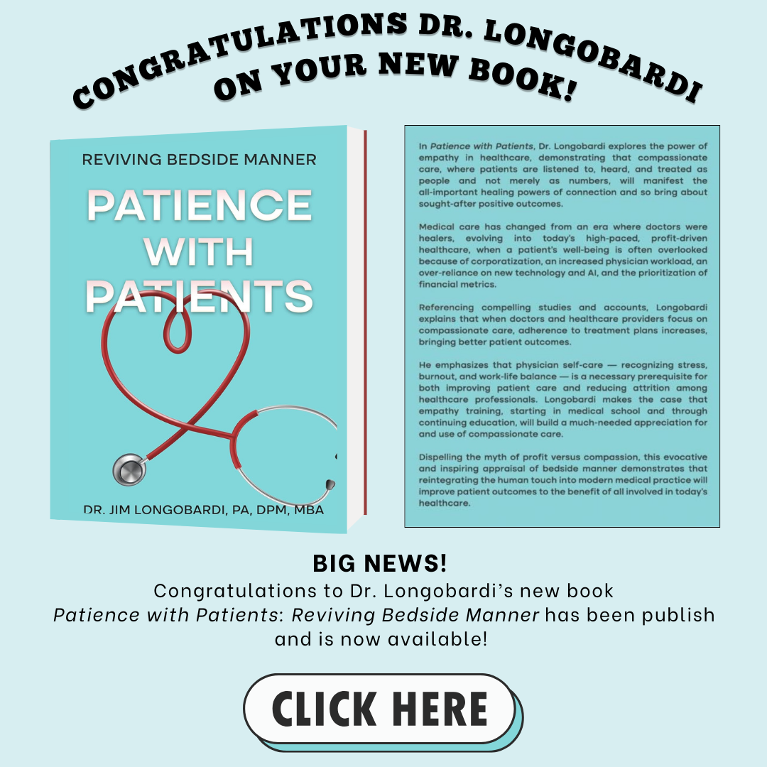 In Patience with Patients, Dr. Longobardi explores the power of empathy in healthcare, demonstrating that compassionate care, where patients are listened to, heard, and treated as people and not merely as numbers, will manifest the all-important healing powers of connection and so bring about sought-after positive outcomes.